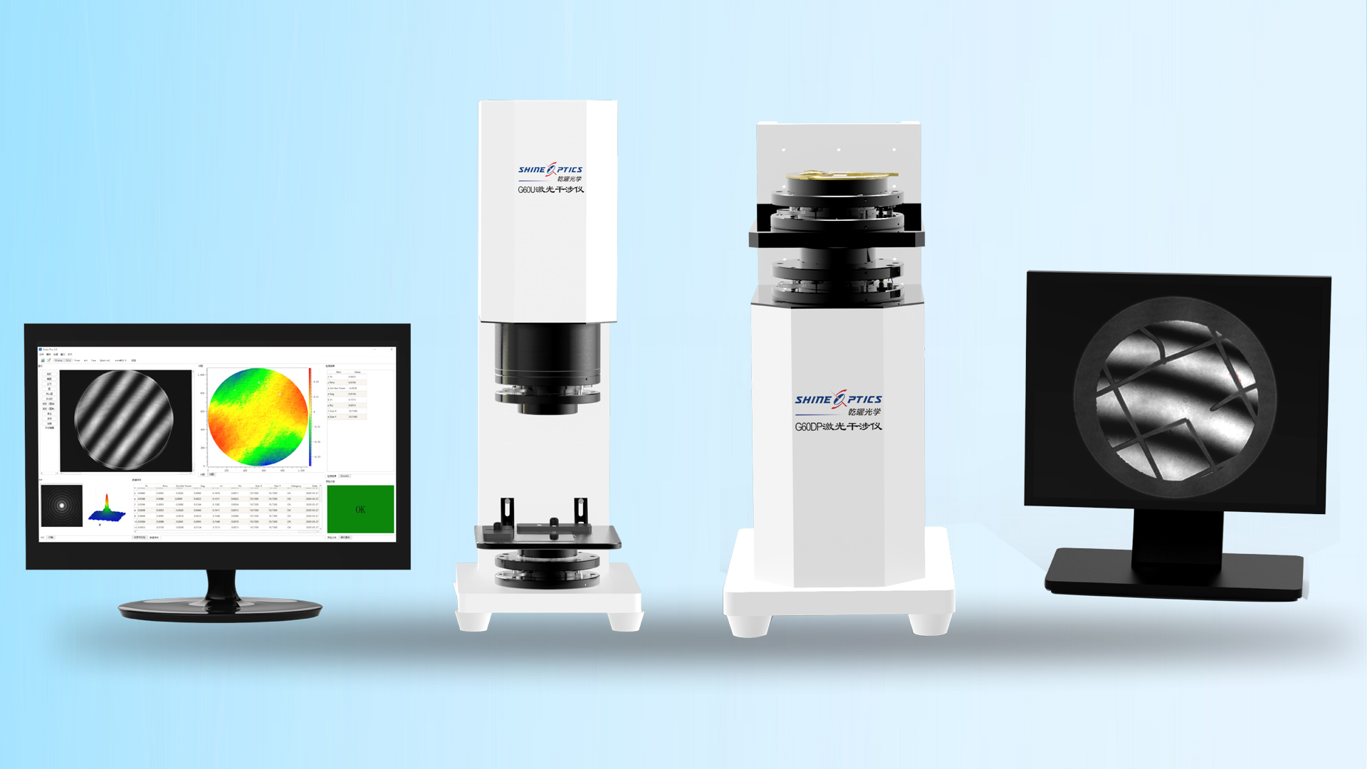 G60DP激光平面干涉儀通光口徑為60mm,鏡頭下置,用于平面元件的低量快速檢測。
