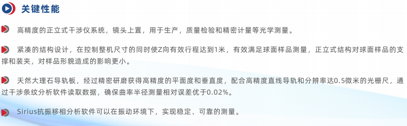 在有些應(yīng)用中,根據(jù)樣品的形狀、裝夾方法、或者模擬樣品使用狀態(tài)下測量,正立式干涉儀結(jié)構(gòu)相比臥式和倒立式更有優(yōu)勢。例如半球形球罩面形和曲率半徑的測量,正立式結(jié)構(gòu)能夠?qū)崿F(xiàn)盤上測量以及下盤后的無夾持應(yīng)力測量,而臥式結(jié)構(gòu)無法夾持半球,倒立式結(jié)構(gòu)測量盤上時(shí)需要支撐樣品和磨盤的重力,易造成樣品變形。