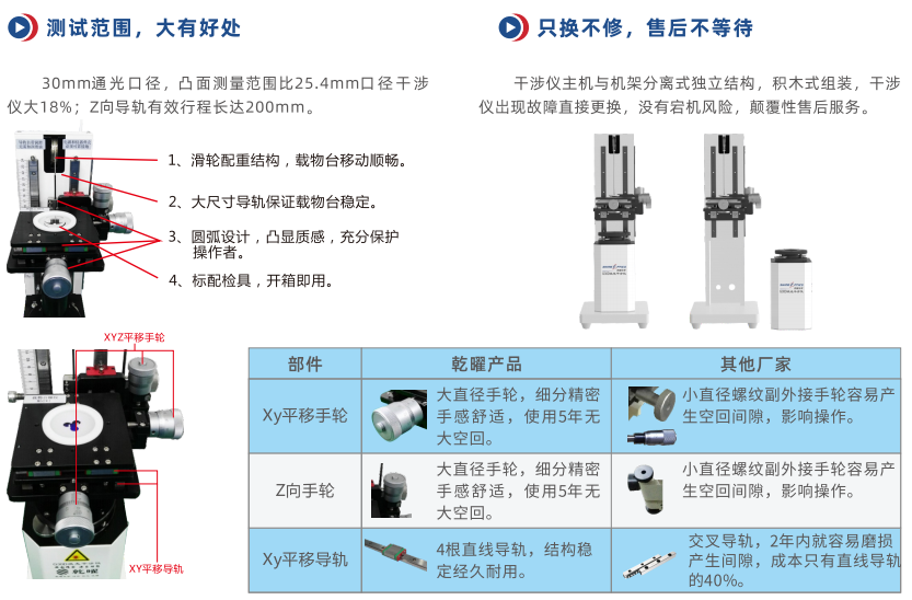 標(biāo)準(zhǔn)鏡頭有F0.6,F(xiàn)0.7,F(xiàn)1.0,F(xiàn)1.4,F(xiàn)2.0,F(xiàn)2.8,F(xiàn)5.6,可定制其他F數(shù)的鏡頭,也可選配平面標(biāo)準(zhǔn)鏡及相關(guān)治具測(cè)量平面鏡。
